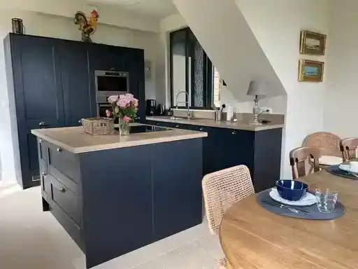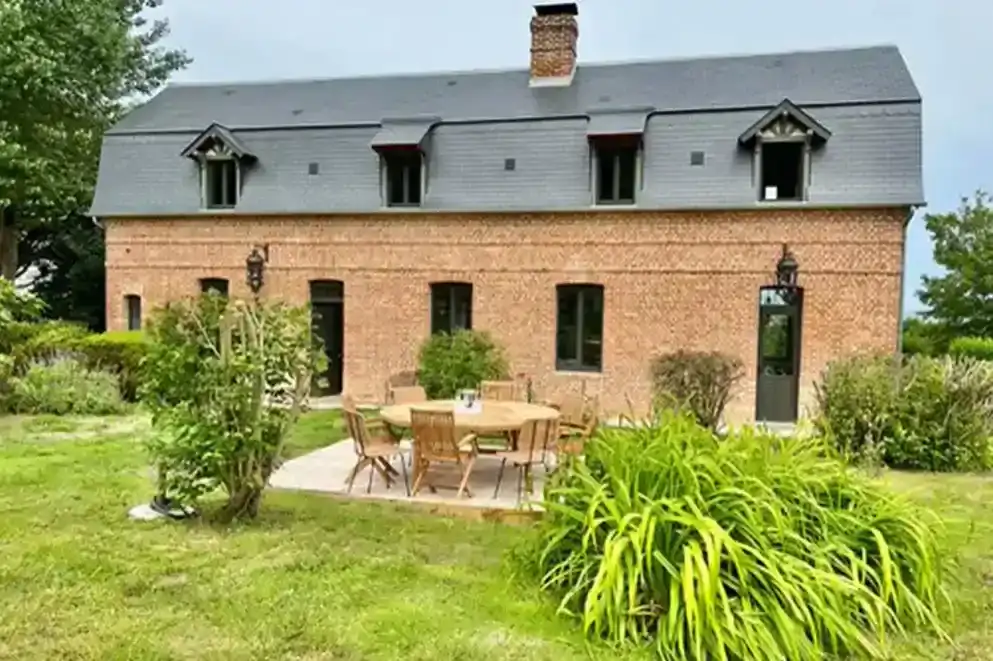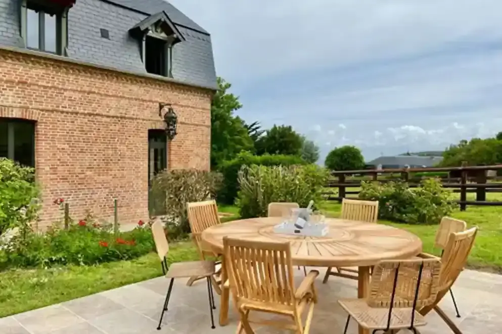 Avec sa double vue Mer et Campagne en compagnie de chevaux et de vaches, la Ferme de Bénerville est un élégant havre de paix. Sa superficie de 170m2 permet d’accueillir jusqu’à 8 adultes et l’extérieur est composé d’un jardin clos et privatif de 700m2 sur un parc de 11 hectares. Des lits enfants supplémentaires permettent de profiter de la maison à 10 personnes en totalité.