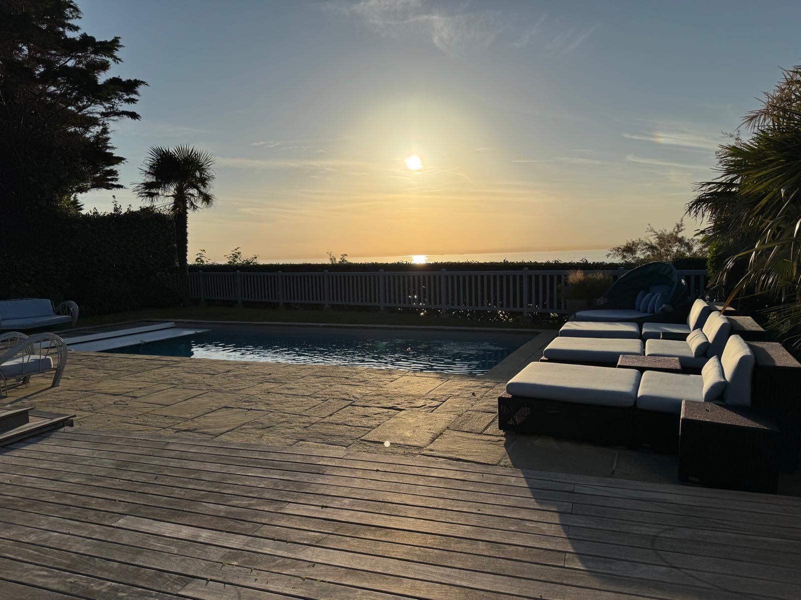 A l'extérieur, les jardins aménagés autour de la piscine vous plongent dans un écrin de verdure propice à la relaxation. Parfait pour profiter d'un cadre idyllique en toute sérénité, ce manoir est un véritable bijou, combinant confort et panorama exceptionnel sur la mer.