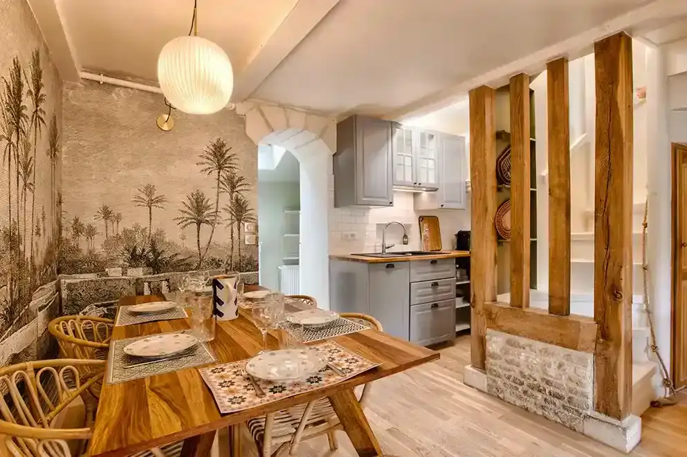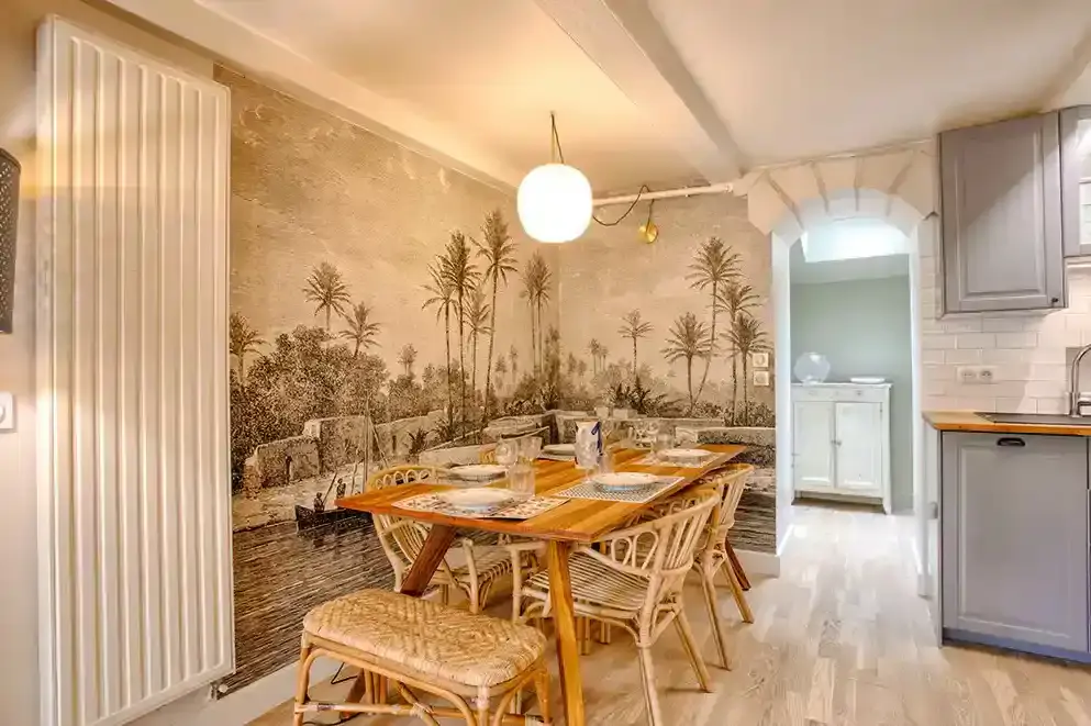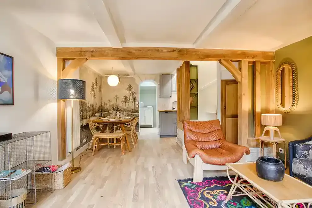 La Villa Bougainvilliers est une maison de pêcheur typique de Trouville sur mer. Elle se situe au calme, dans une petite allée piétonne. C’est un petit havre de paix au milieu de l’ambiance Trouvillaise. Toute la maison vient d’être rénovée avec grande attention sur la décoration. La maison possède un escalier en colimaçon typique de ces maisons.