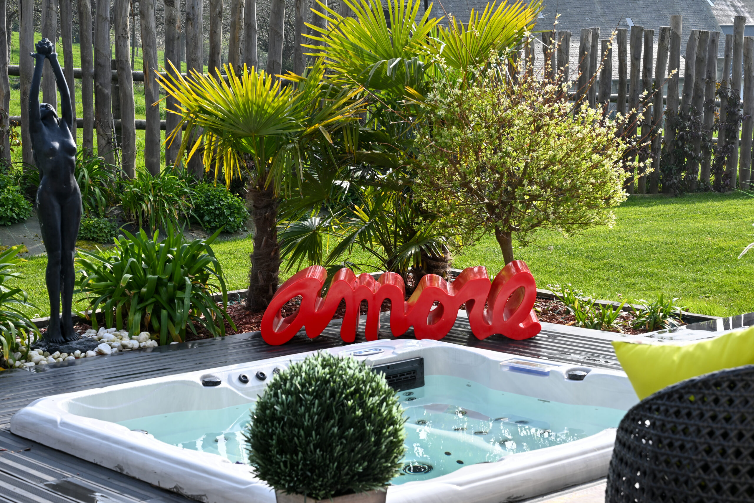À l’extérieur, laissez-vous séduire par un espace dédié à la relaxation avec un spa thérapeutique, idéal pour se détendre après une journée de découverte ou simplement profiter d’un moment de calme.