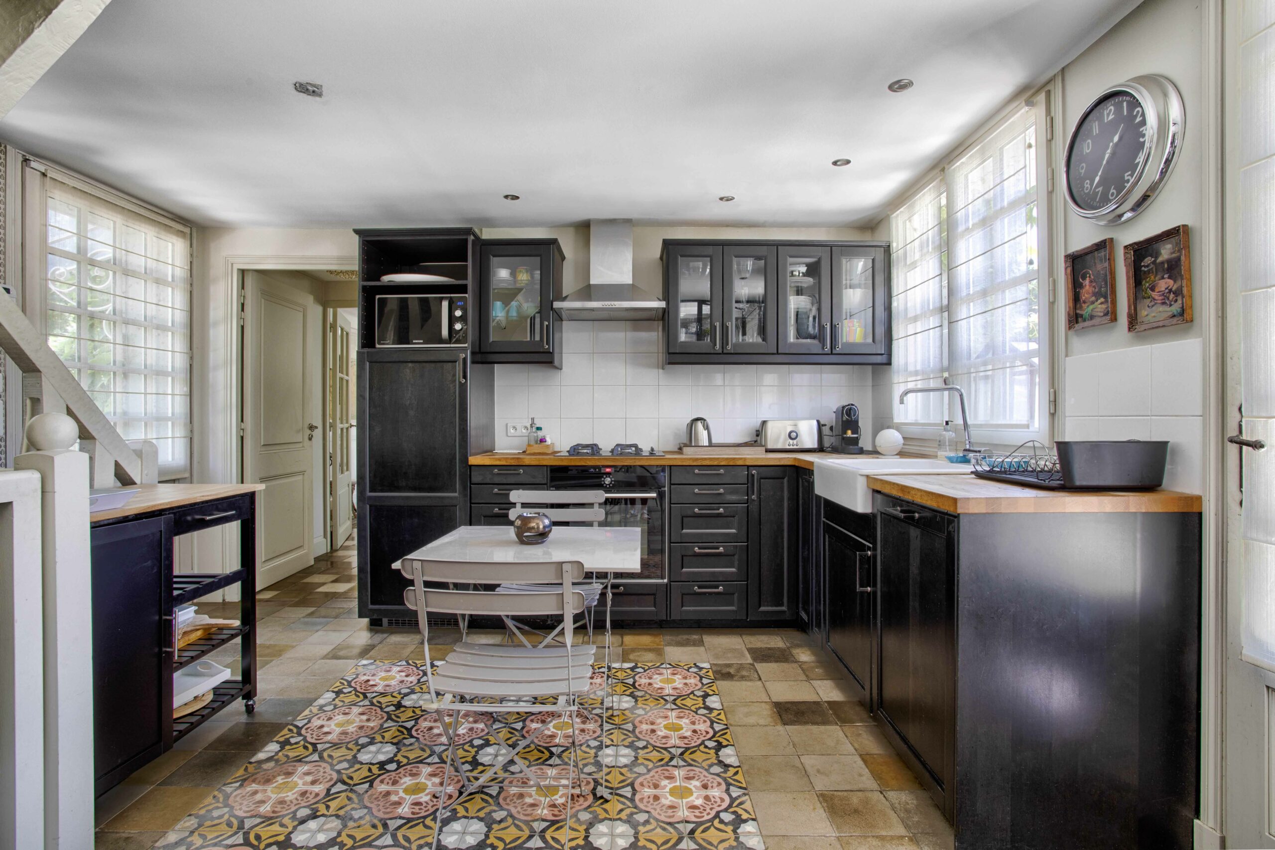 - ^- 3 salons, salle à manger, cuisine