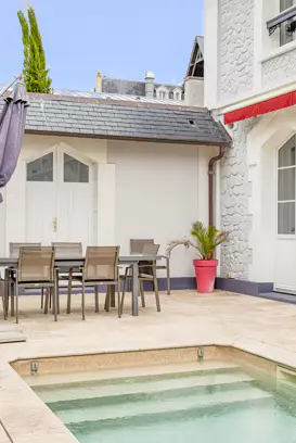 - ^- Piscine/couloir de nage chauffé de mai à septembre, grande terrasse avec barbecue